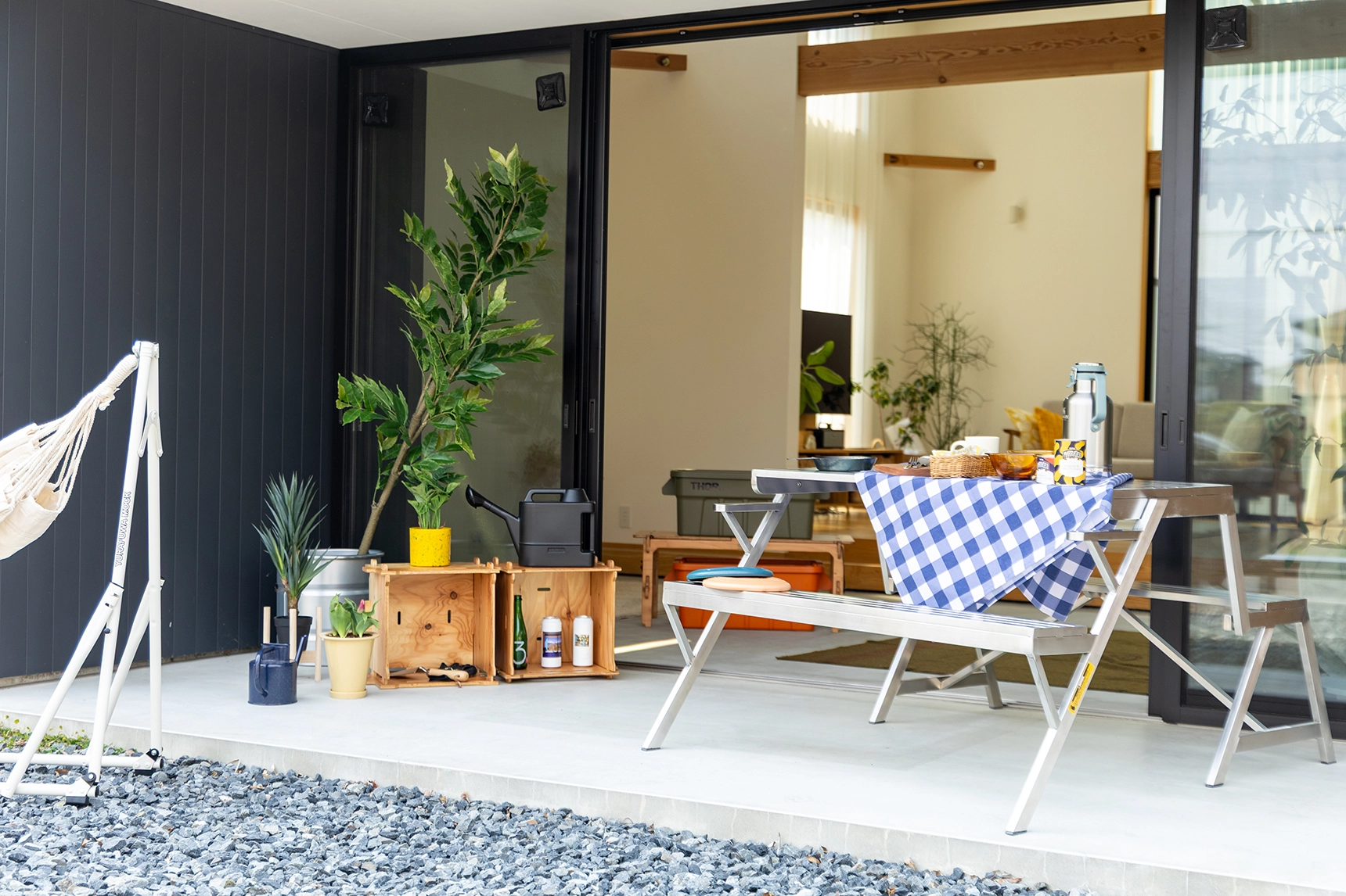 遠くへ行かなくても、車で移動しなくても。庭にラグを敷いて、お気に入りのチェアを出す。コーヒーを淹れて風に吹かれるだけで、日常の雑音はゆっくりと遠ざかっていく。何かを忘れても家に戻ればいいし、寝床もすぐそこにある。これは「楽をする」というより、「肩の力を抜いて楽しめる」ということ。キャンプの経験がなくても、体力や時間に自信がなくても、庭なら、誰でも気軽に自然とふれあえます。